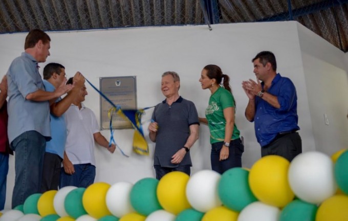 Agora, o complexo esportivo conta com novo revestimento do piso interno e da área externa, vestiário masculino e feminino, além da reformada piscina, estreada pelo próprio prefeito e pela primeira-dama, Elisabeth Valeiko Ribeiro, que não resistiram a brincadeira com as crianças.