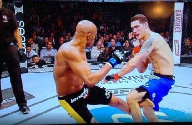 Ao tentar retomar o cinturão dos médios de Weidman no UFC, Anderson Silva acabou sofrendo uma lesão. Ele não foi bem no 1º round, mas no seguinte tentava ditar o ritmo da luta quando acertou um chute no rival e acabou tendo uma fratura na canela esquerda. Teve de desistir do combate e viu o cinturão ficar mais distante.