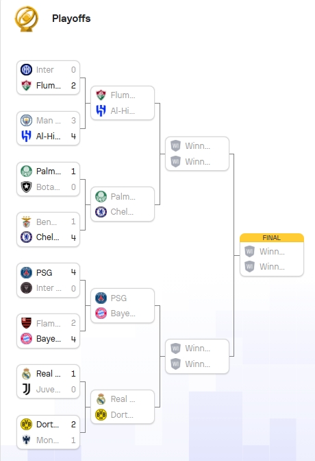 Do outro lado, apenas o Chelsea representa a Europa e enfrenta o Palmeiras, enquanto Fluminense e Al-Hilal disputam a outra vaga nas semifinais. A final será no dia 13 de julho, no MetLife Stadium, em Nova Jersey (EUA).
