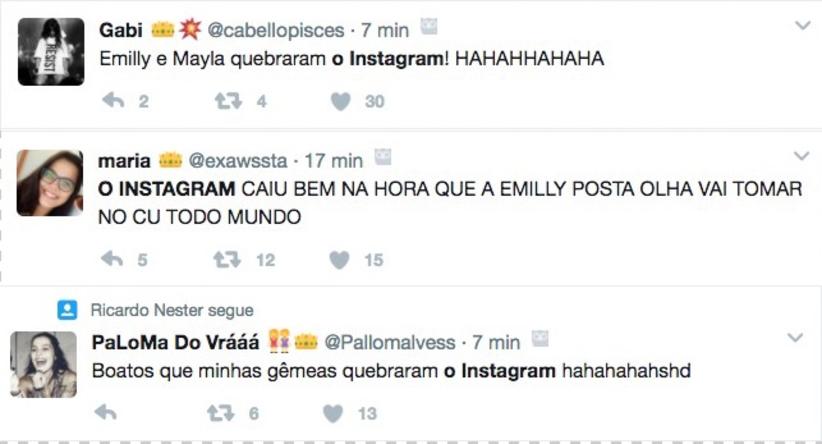 Coincidentemente, minutos após o post tão esperado da gêmea, o Instagram saiu do ar e internautas brincaram com a situação. “Emilly e Mayla quebraram o Instagram hahaha”, escreveu uma seguidora.