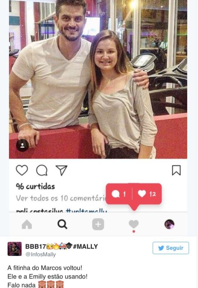 Foi que bastou para que os fãs do ex-casal torcessem por uma reconciliação. “Olha a fitinha no braço que a Emilly amarrou. Que lindo”, disse um internauta. “A fitinha do Marcos voltou! Ele e a Emilly estão usando! Falo nada”, comentou outra pessoa.