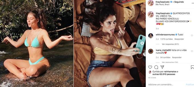 O namoro de Thaylise com Vitão terminou em setembro do ano passado, na mesma época em que o cantor também causou ao lançar o clipe "Complicado" aos beijos e amassos com Anitta. Na época, Thaylise afirmou que não houve traição e que o namoro já havia chegado ao fim.