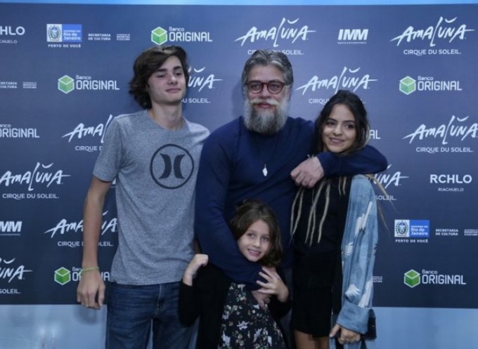 O casal esteve na noite desta quinta-feira (28) em um espetáculo do Cirque Du Soleil, no Rio de Janeiro, na companhia dos filhos do ator.