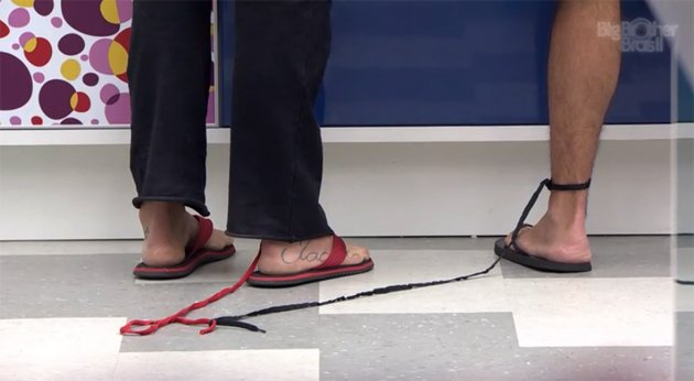 O emparedado Marcelo se surpreende com um gesto de carinho de Roni. Pela manhã ele lavava a louça quando Roni amarra um pedaço de barbante no tornozelo de Marcelo.
