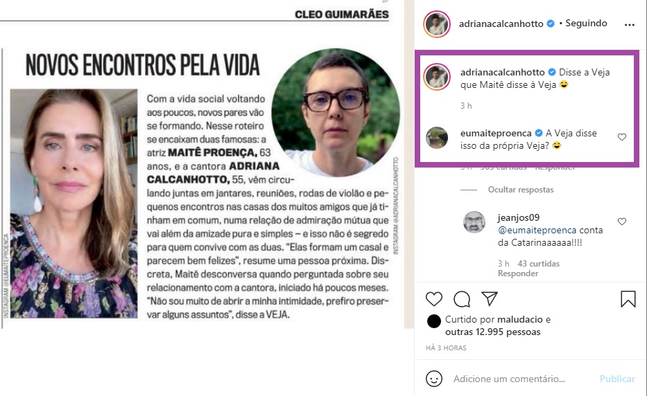 “Disse a Veja que Maitê disse à Veja”, escreveu Calcanhoto na legenda.