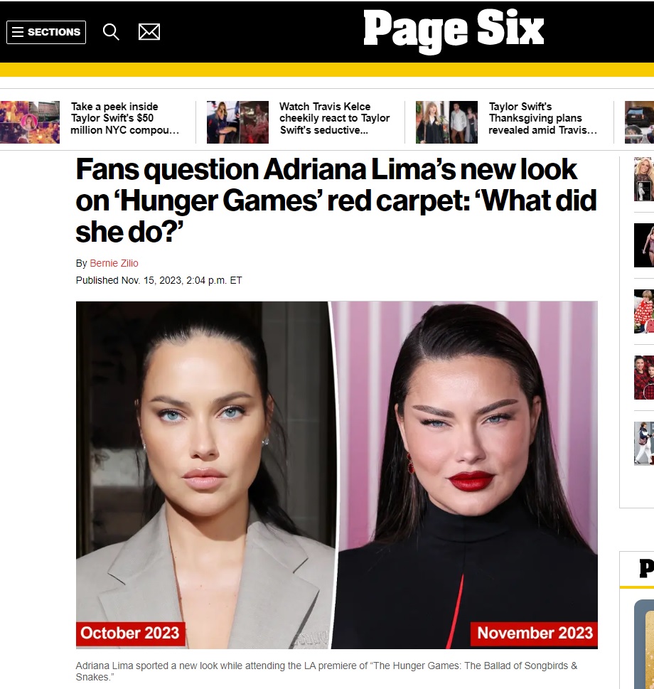 A brasileira Adriana Lima aparece com rosto diferente durante o première do filme “Jogos Vorazes” e chama atenção de internautas. pic.twitter.com/cctyBoMWI9