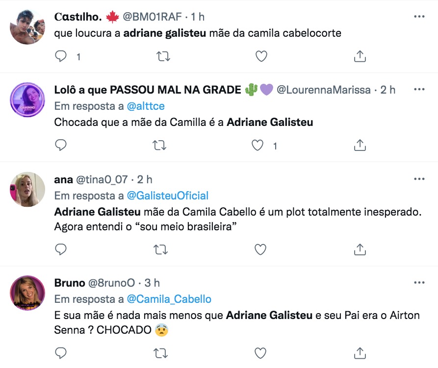 Camila Cabello publicou uma foto antiga com a mãe no Twitter e confundiu os internautas brasileiros, que confundiram a mãe com a Adriane Galisteu.