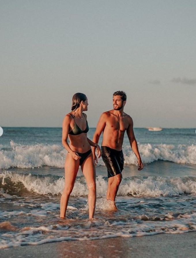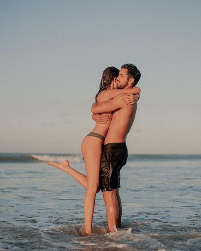 No Instagram, os dois publicaram fotos aos beijos em uma praia.