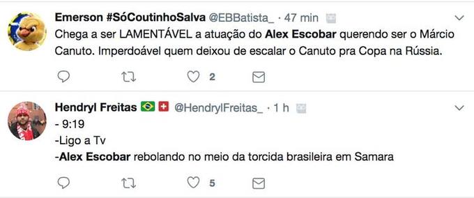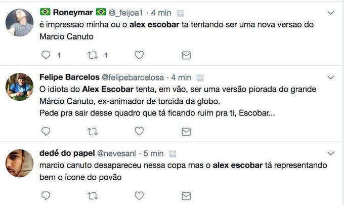 “É impressão minha ou o alex escobar ta tentando ser uma nova versao do Marcio Canuto”, brincou outro.
