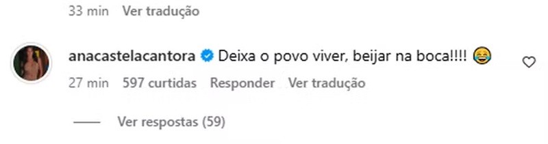 "Deixa o povo viver, beijar na boca!", escreveu a cantora em uma publicação do portal Leo Dias, que dizia que o rapaz vinha sendo "companhia inseparável" da cantora nos camarins de seus shows.