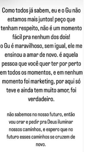 Ela deixou a situação em aberto dizendo que vai orar para que os caminhos dos dois se encontrem de novo no futuro.