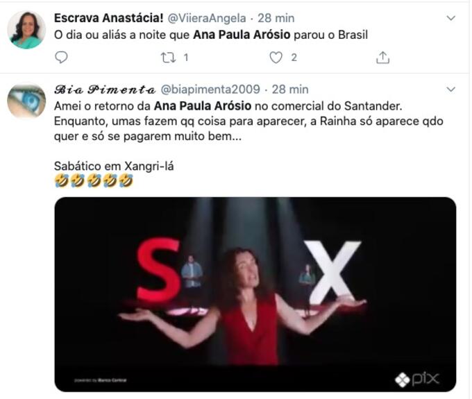 Após 10 anos de reclusão, Ana Paula Arósio deu o ar da graça na telinha, nesta terça-feira (25), em um comercial do banco Santander. A atriz chegou a fazer piada com o próprio sumiço da TV.