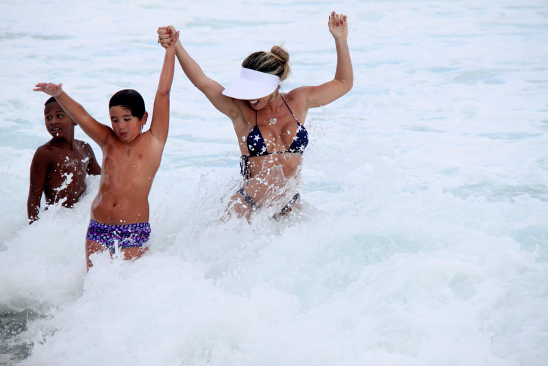 Sempre que possível, Andrea de Andrade vai curtir a praia da Barra da Tijuca, e o figurino não pode ser outro: Biquíni fio-dental, para deixar seus 105cm de bumbum à mostra. Na tarde deste sábado, 23, a musa do carnaval foi acompanhada do seu filho, que brincou na praia com amigos.