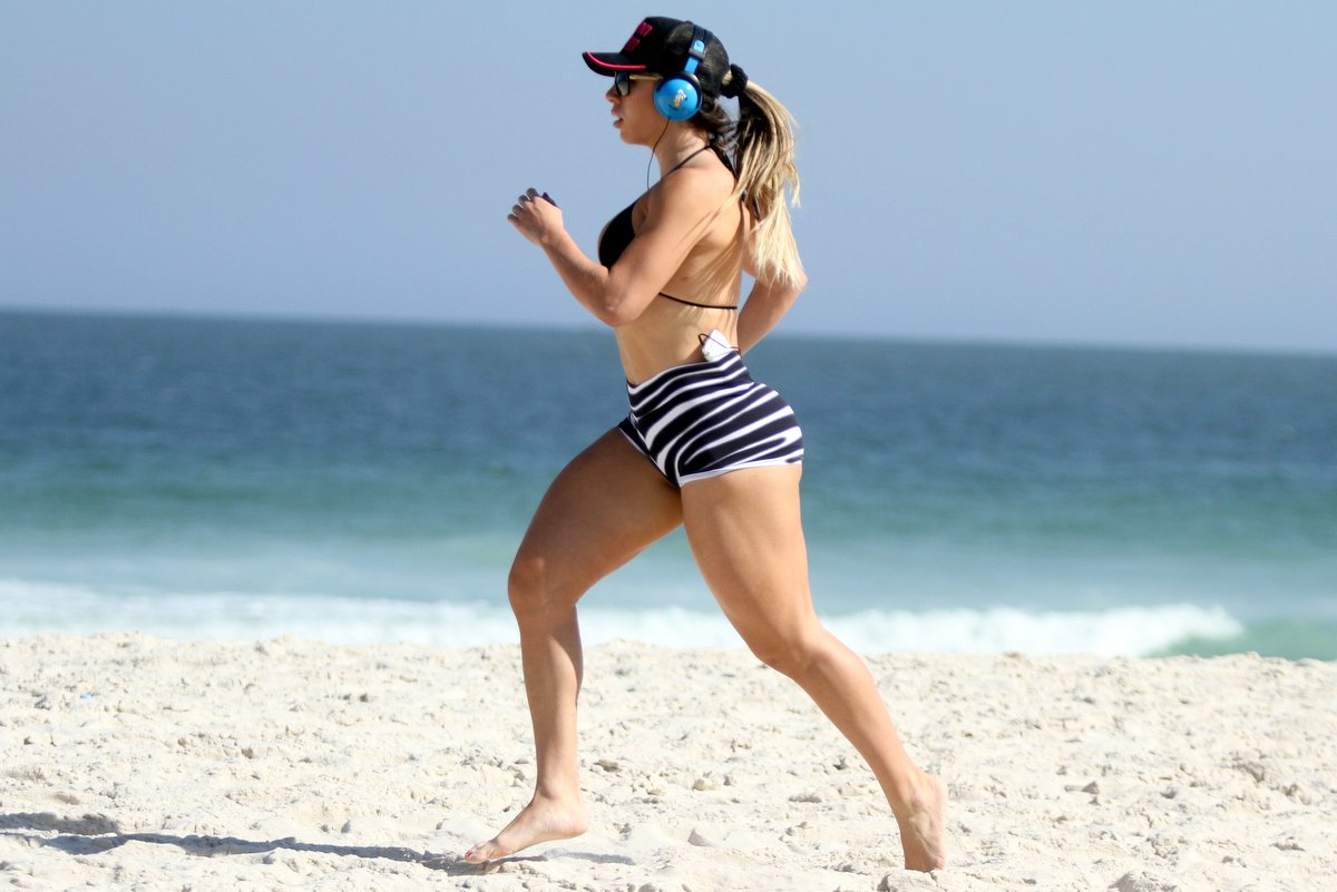 Andrea de Andrade mostrou o resultado da sua malhação fiel de todos os dias e tirou a tarde desta quinta-feira, 8, para correr na Praia da Barra da Tijuca, Zona Oeste do Rio de Janeiro. Cheia de músculos, a loira usou um microshort e um pequeno biquíni que chamou a atenção nas areias cariocas.