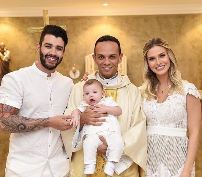 Andressa Suita e Gusttavo Lima batizaram o filho, Gabriel, de 5 meses.
