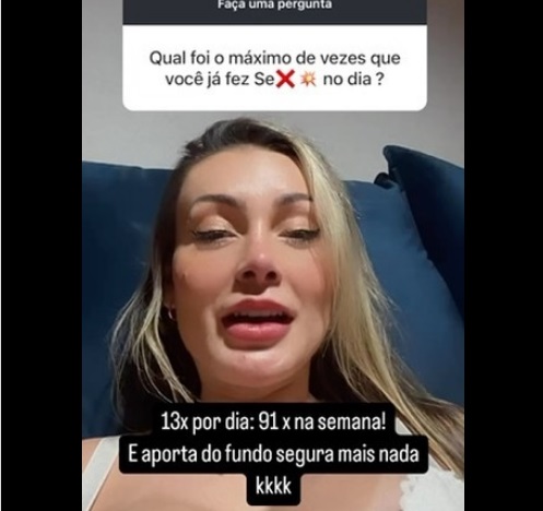 Andressa Urach revelou aos seguidores que faz sexo anal 13 vezes ao dia. Ela publicou uma caixinha de perguntas e respondeu sem papas na língua. "Qual foi o máximo de vezes que você já fez sexo no dia?".