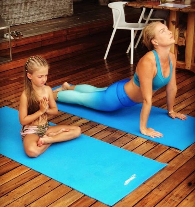 Afastada da televisão, a loira compartilhou ainda uma foto praticando Yoga ao lado da filha, Eva: "Dia internacional do yoha #gratidão por ter minha princesa comigo nesse aprendizado".
