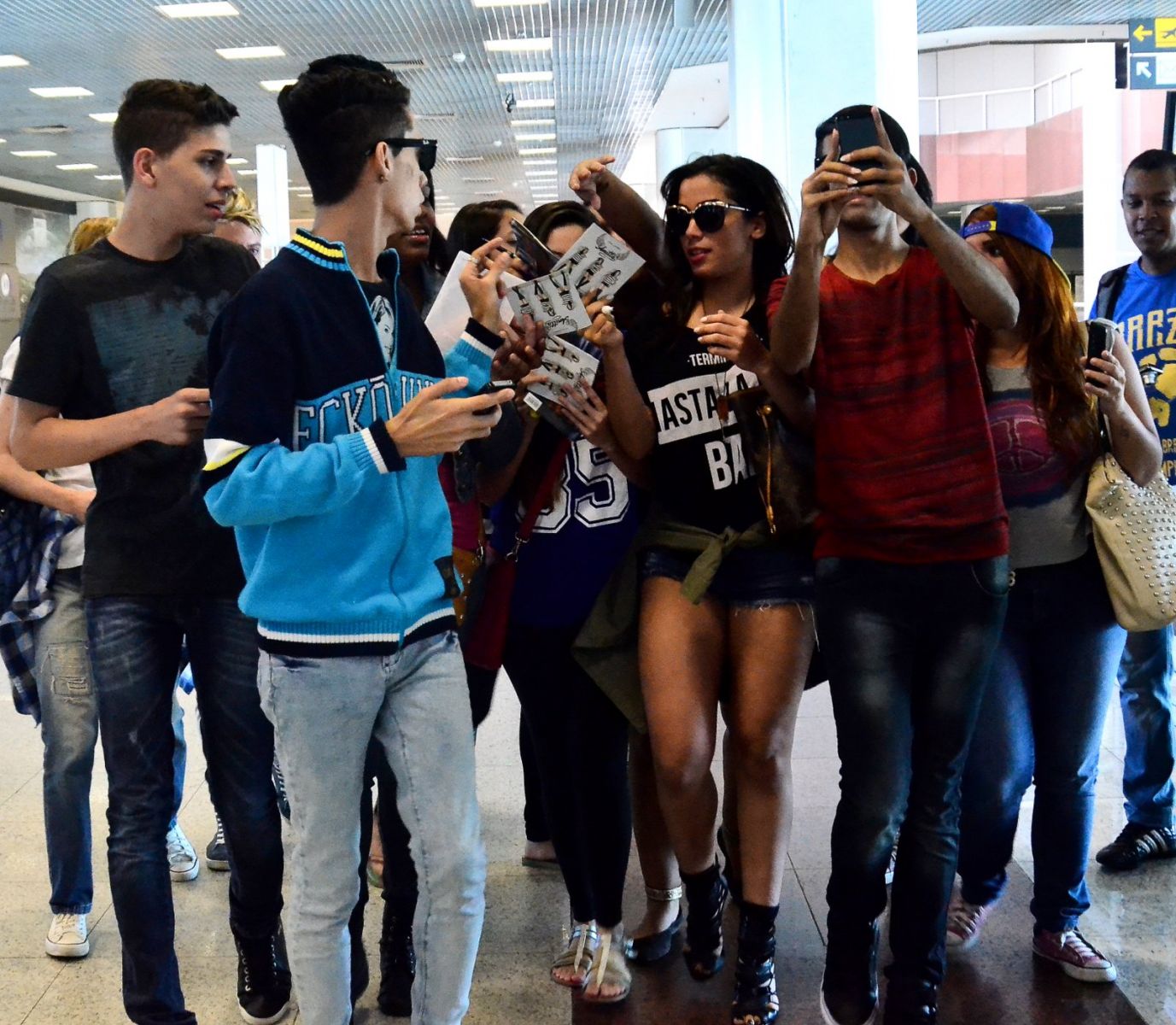 Com um shortinho curto e óculos escuros, a cantora foi praticamente atacada pelos admiradores, que a rodearam pedindo fotos e autógrafos, dando presentes e quase a impossibilitando de andar pelo local antes do embarque. Anitta sorriu para as fotos e autografou suas camisetas e CDs.