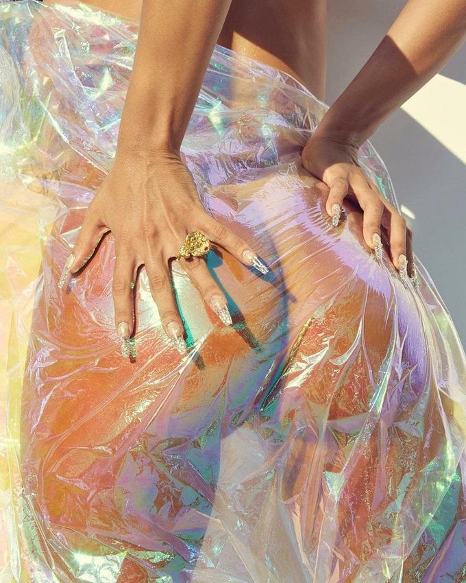 Anitta agitou a web ao compartilhar novos fotos, nesta quarta-feira (12), do seu ensaio para a V Magazine. Nas imagens, a funkeira surge completamente nua enrolando partes do corpo com papel celofane transparente.