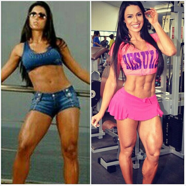 "Vocês sempre me pedem fotos de quando comecei a treinar, não tenho muitas, mas as que tenho gosto de compartilhar, para que possam ver o quanto é importante acreditar em si mesmo e ter paciência para alcançar nossos objetivos. São 14 anos de diferença de uma foto para a outra, na primeira eu tinha 17 anos já havia iniciado esse meu estilo de vida, a outra foto é atual eu aos 31 anos. De lá pra cá muitas coisas mudaram, corpo, idade, percentual de gordura, levei muitos "tombos", treinei errado, não me alimentava corretamente ou me suplementava como deveria, por não ter condições. Mas uma coisa não mudou, o meu querer! Nunca deixei que as dificuldades me atrapalhassem, sempre coloquei o querer a frente de tudo, me esforcei, me dediquei, renunciei à muitas coisas pra chegar", escreveu a morena na legenda da imagem.