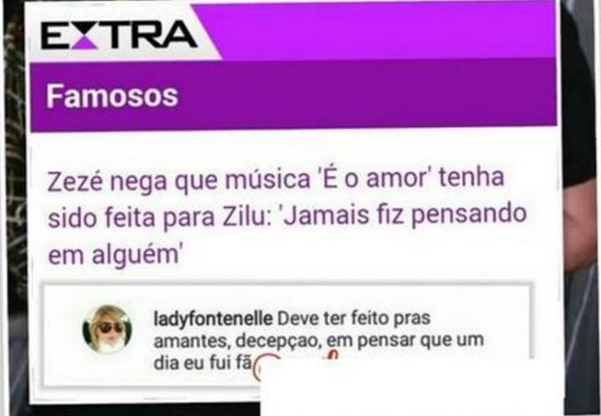 Antonia Fontenelle não gostou nada de saber da recente declaração de Zezé Di Camargo. O cantor revelou que a música “É o Amor” não foi feita para Zilu, com quem viveu por 30 anos.