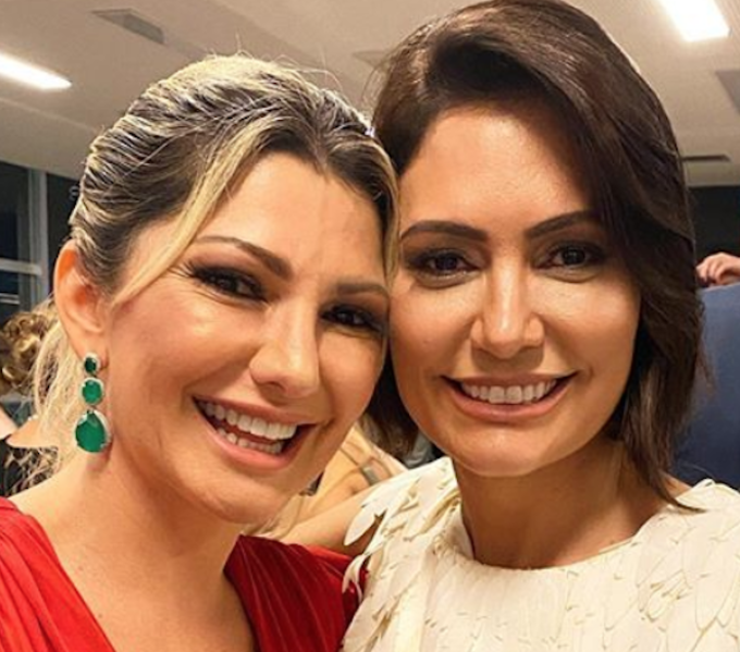 Antônia Fontenelle estava entre os convidados do casamento da deputada Carla Zambelli, na noite desta sexta-feira (14). Na ocasião, a atriz posou ao lado da primeira-dama Michelle Bolsonaro.
