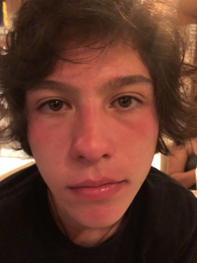 Maisa mostrou o namorado com o rosto vermelho depois de pegar muito sol.