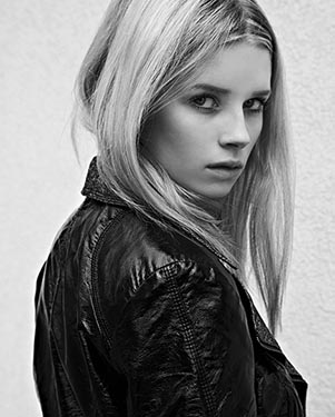 No site da agência, ela tem alguns dados seus divulgados. A loira de olhos azuis, que ainda está completando o ensino médio, tem 1.65 m de altura, 66 cm de cintura e 56 de quadril.