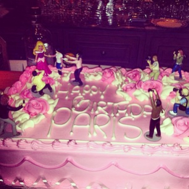 Com o tema e decoração de "Alice no País das Maravilhas", Paris se fantasiou da protagonista do desenho. Até o bolo foi especial, com uma boneca da loira sendo fotografada por vários paparazzi.