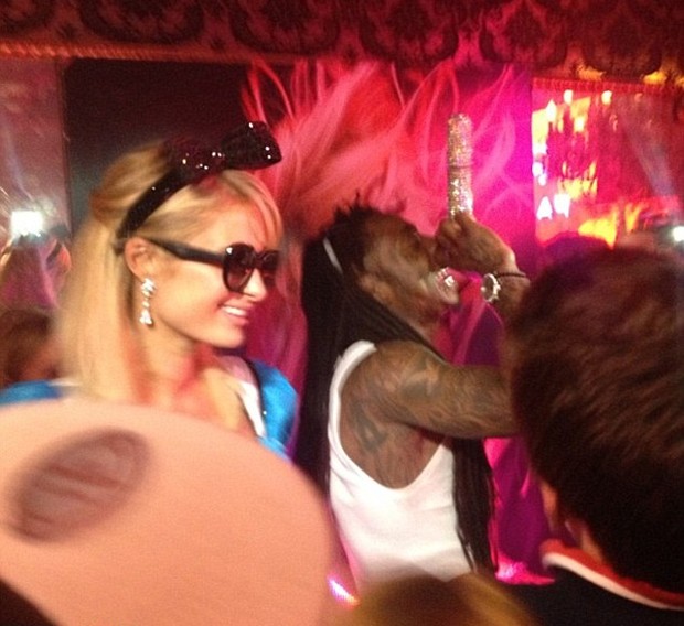Regada a 100 garrafas de champagne de luxo, a festança aconteceu no sábado, 2, na sua mansão em Los Angeles, e teve a participação do rapper Lil Wayne.