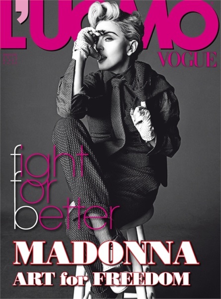 No mais novo ensaio da Rainha do Pop feito por Tom Munro para a L'Uomo Vogue, a cantora aparece "peladona", mostrando os seios sem pudor.