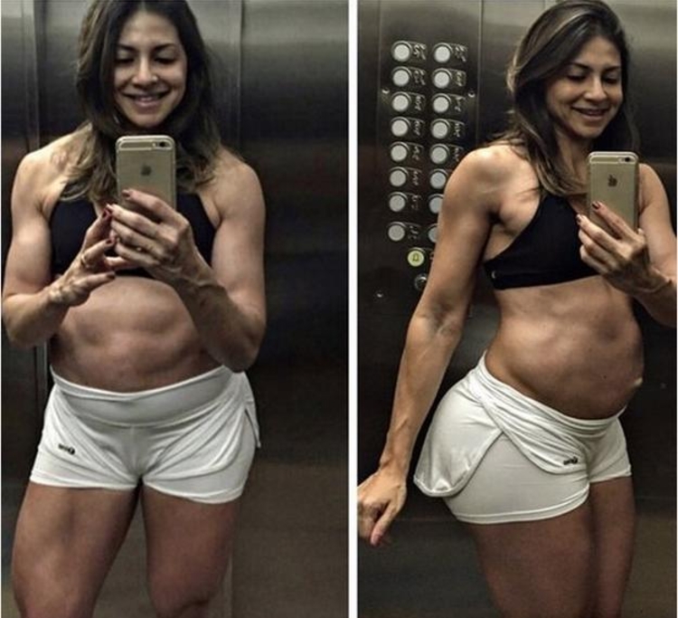 Em sua defesa, ela diz: "Eu sei que não é normal ver uma grávida com a minha aparência e, por isso, chama atenção. Já sou mãe e meus filhos são muito saudáveis. Malho muito, todo dia, e não diminuo carga, nada. Mantenho a alimentação bem saudável e simplesmente não mudo a minha rotina".