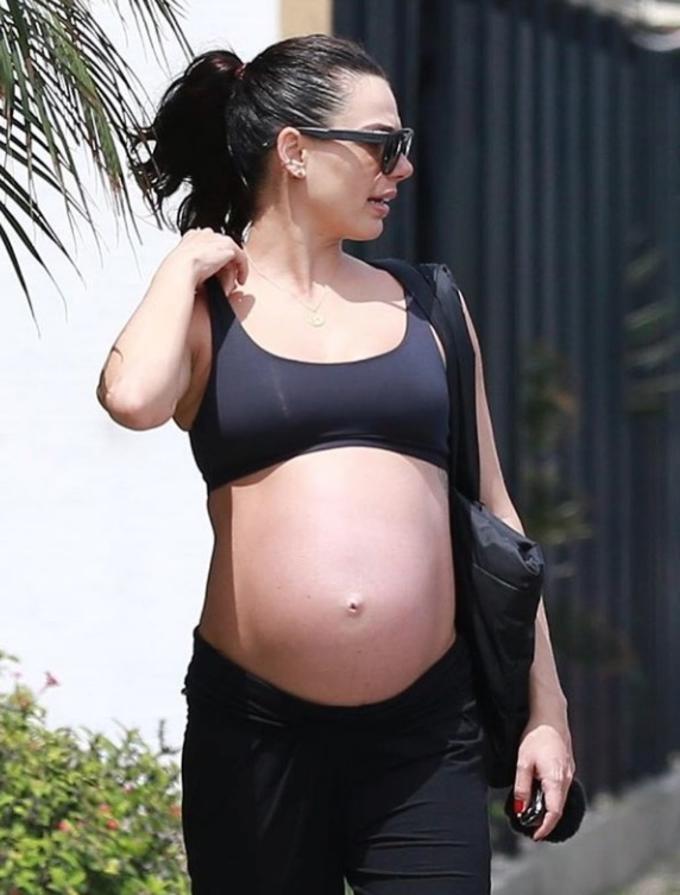 Isis Valverde está prestes a dar à luz, mas ainda assim está mantendo os exercícios em dia.