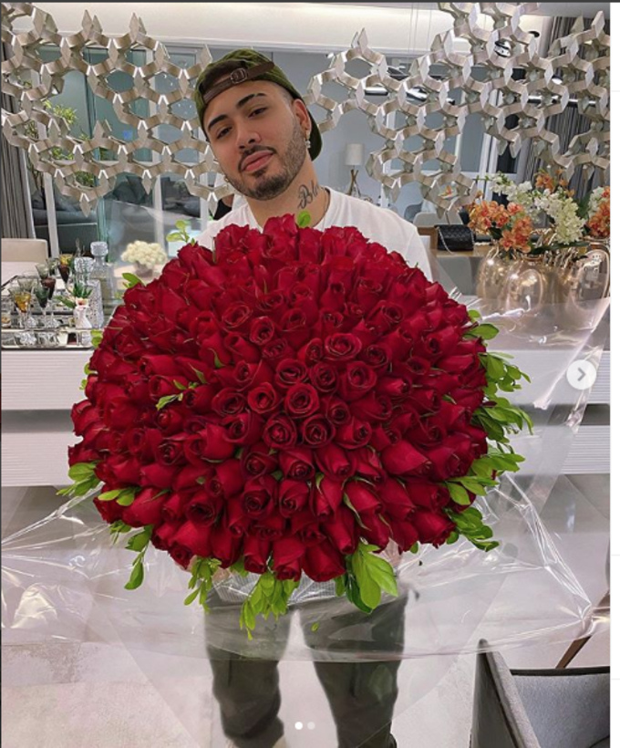 O funkeiro Kevinho mostrou todo o seu lado romântico e apaixonado. Ele surpreendeu ao entregar um buquê enorme de rosas vermelhas para a namorada, a influenciadora digital Gabriela Versiani.