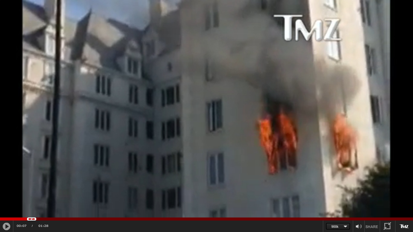 Imagem do apartamento da atriz, durante o incêndio. Reprodução/TMZ