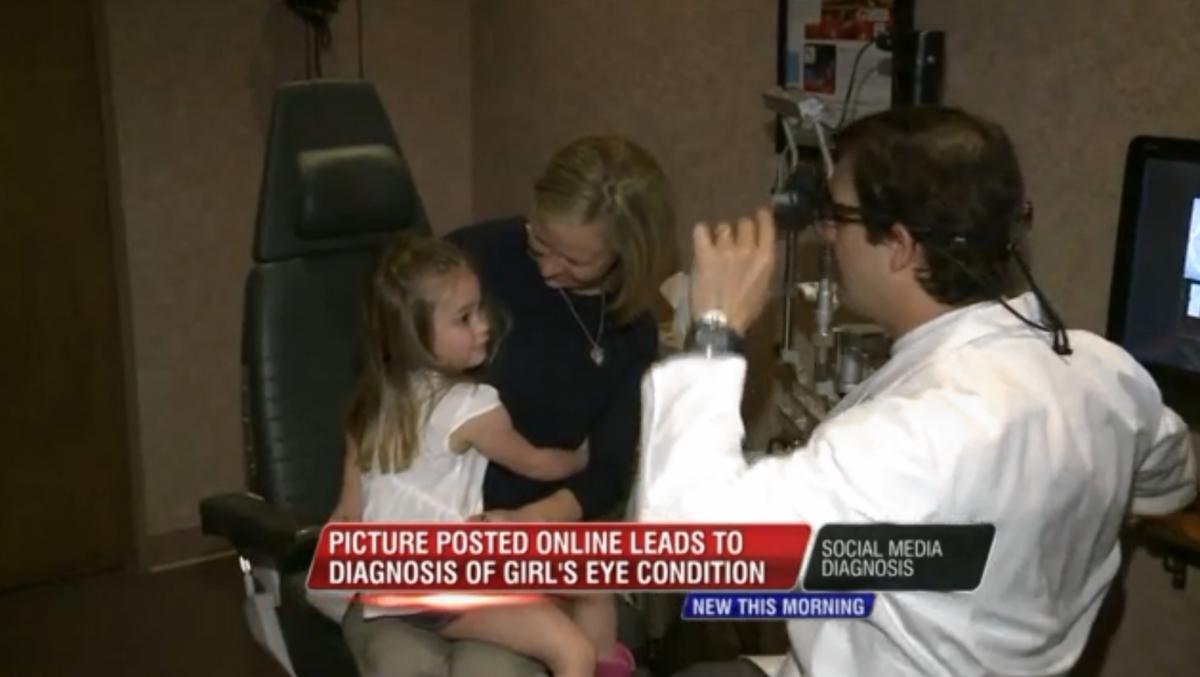 Por conta de uma foto no Facebook , uma garotinha americana de 3 anos escapou da cegueira. Depois de Tara Taylor publicar uma foto em que a filha, Rylee, aparece com um dos olhos amarelados na rede social, dois amigos suspeitaram de alguma doença e resolveram comentar.