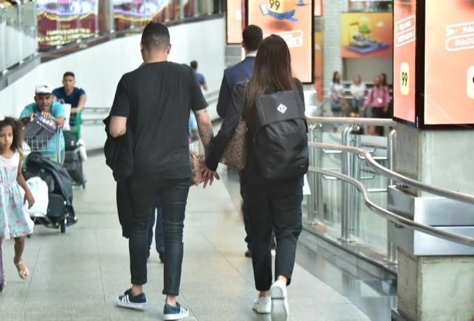 Os dois andaram de mãos dadas e conversaram enquanto caminharam até a saída do aeroporto. Ainda na quinta-feira (29), o cantor foi fotografado passeando em um shopping acompanhado da amada, que deixou a barriguinha sarada à mostra.