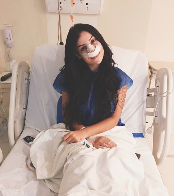A blogueira mostrou o nariz com o curativo em seu Instagram e revelou o procedimento. A plástica no nariz era um desejo antigo de Bianca.
