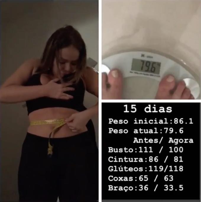 Pois bem, em 15 dias Paulinha eliminou 7kg e mostrou o resultado no Instagram. “Como prometido meu resultado de 15 em 15 dias pra vcs”, disse mostrando uma foto da balança.