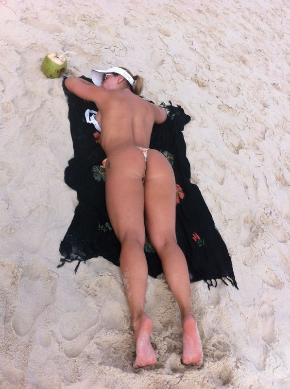 Não contente em esbanjar sensualidade usando um biquíni, a gata ainda desamarrou a peça de cima e evitou marquinhas fazendo topless.