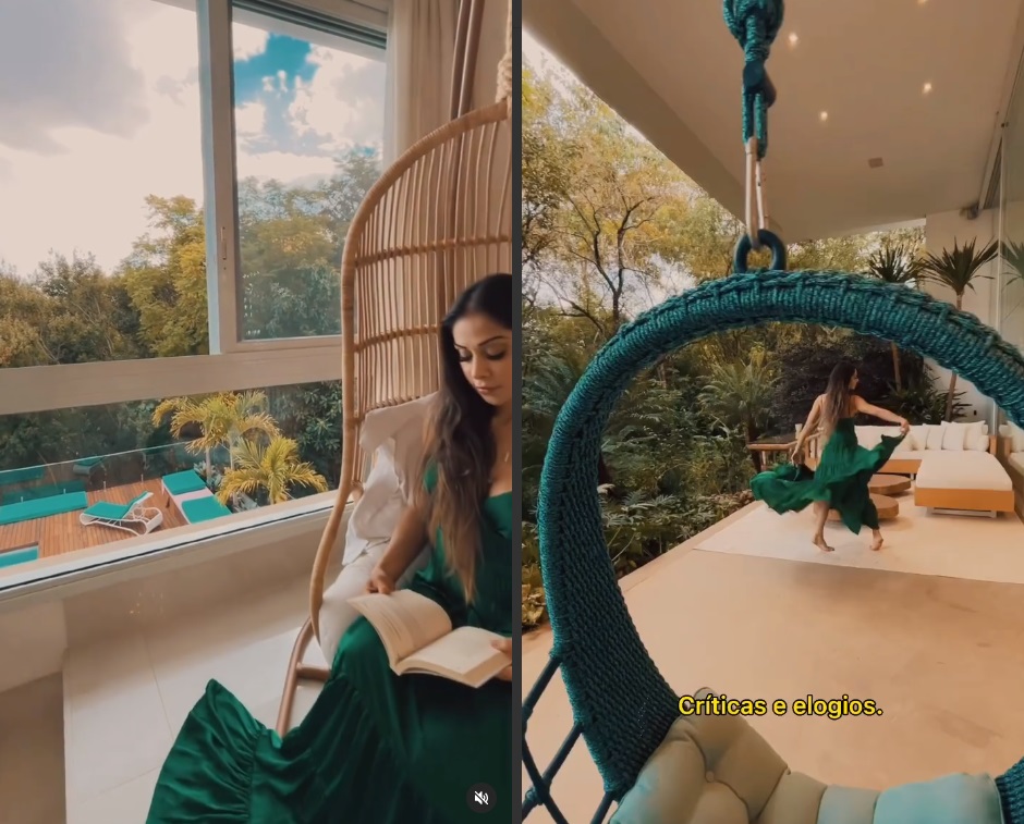"Eu e Arthur resolvemos juntar nossas escovas de dentes novamente! E obviamente eu não poderia deixar de dividir com vocês essa nova fase! Resolvemos juntar as tralhas só que nessa casa só tinha eu, meu mundo rosa, minha piscina rosa, meu futon rosa, meu tapete rosa", diz. “Quando vim morar aqui era solteira. Resolvemos voltar e como é que faz? Vai para uma outra casa? Jamais! Por benefício da nossa filha, nós vamos ficar aqui. Depois a gente pensa o que vai fazer", afirmou ela, que disse que Arthur também precisou abrir mão do seu apartamento para morar junto a ela. "Ele saiu do apartamento dele para ficar no nosso mundo rosa", completa.