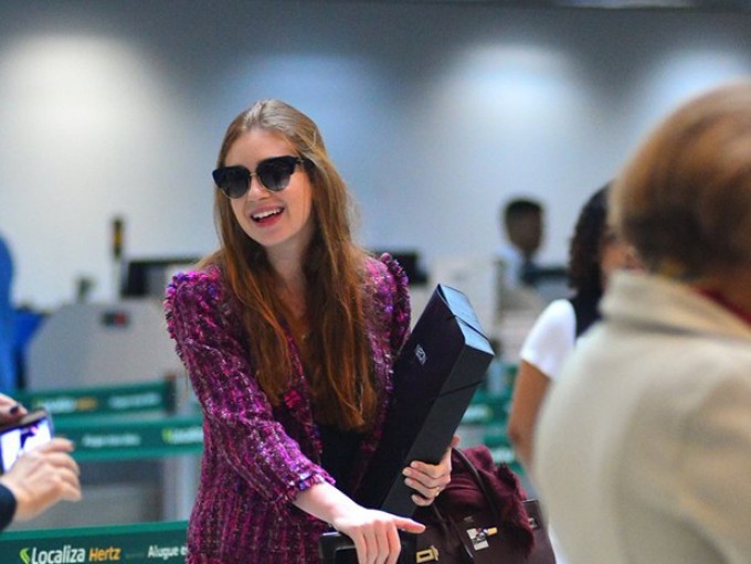 Faltando 3 dias para o casamento, Marina Ruy Barbosa foi clicada cheia de estilo no aeroporto Santos Dumont, no Rio de Janeiro.