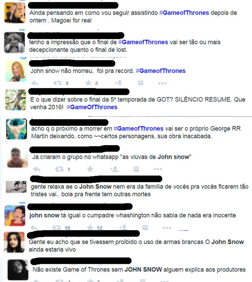 No Twitter, vários fãs da série reclamaram da morte do personagem e criticaram os produtores da trama. Mas quem não gostou mesmo da morte foram os telespectadores que ainda não assistiram ao último episódio que tiveram que acompanhar os comentários cheios de spoilers .