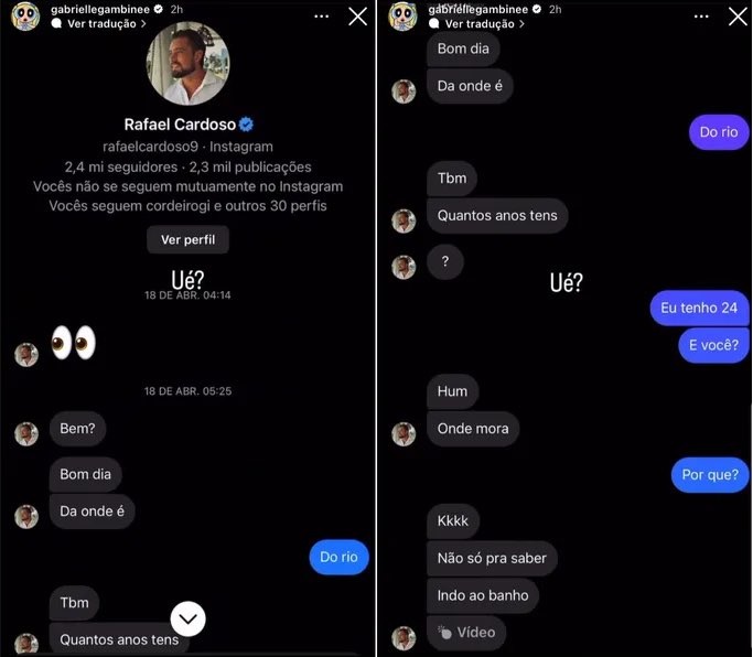 A atriz transexual Gabrielle Gambine, que é sobrinha de Roberta Close e atuou em “Verdades Secretas 2”, expôs Rafael Cardoso após o ator compartilhar um post com comentários homofóbicos sobre João Guilherme.