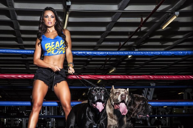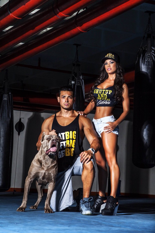 Ao lado do fortão, a morenaça exibiu o seu físico sarado em fotos feitas para uma campanha de moda fitness em uma academia de São Paulo. Para manter o seu corpo ideal, Fernanda treina diariamente e segue uma alimentação rígida.