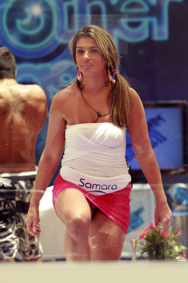 A candidata a "sister" no Big Brother Brasil 2013, Samara, que está na casa de vidro concorrendo a vagas no reality show, acabou se empolgando e mostrando demais enquanto dançava pedindo votos ao público.