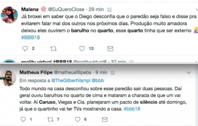 Para piorar a situação, barulhos de obras no andar de cima vêm sendo escutados na casa . No Twitter, telespectadores do pay per view reclamaram que o barulho estragará completamente a surpresa da falsa eliminação e que os brothers já estão desconfiados da possibilidade de algum participante ficar confinado escondido em outra área da casa.