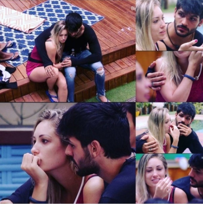Lucas sentou ao lado de Jéssica, abraçou e fez carinho na sister. Depois, a loira o convidou para deitar em seu colo e foi atendida.