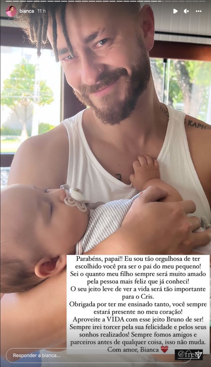 “Obrigada por ter me ensinado tanto, você sempre estará presente no meu coração! Aproveite a vida com esse jeito Bruno de ser! Sempre irei torcer pela sua felicidade e pelos seus sonhos realizados! Sempre fomos amigos e parceiros antes de qualquer coisa, isso não muda. Com amor, Bianca”, finalizou.