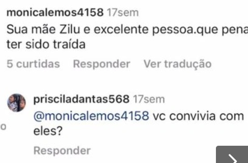 Leo Dias divulgou nesta terça-feira (31) alguns prints do perfil "@prisciladantas568" fazendo vários comentários maldosos nas fotos de membros da família, como Zilu Camargo, e as filhas do sertanejo, Wanessa e Camila.